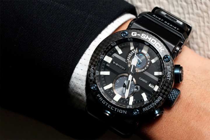 Estructura Carbon Core Guard de GRAVITYMASTER De GRAVITYMASTER, el resistente reloj diseñado para los entornos extremos que enfrentan los pilotos, presentamos el nuevo reloj que ofrece un nivel incluso mayor de resistencia mediante el uso de los mismos materiales de carbono y titanio que se utilizan en las aeronaves modernas. Una nueva estructura Carbon Core Guard resistente a golpes integra la carcasa y la cubierta posterior para crear una unidad monocasco única de carbono que protege al módulo de golpes externos y permite eliminar las piezas de protección de carbono de los botones en los costados de la carcasa. El uso del material de carbono en el marco y la banda, y la aleación de titanio en los botones, las muescas de los botones y los componentes, da como resultado un reloj que es estructuralmente resistente, ligero e inoxidable. El ajuste automático de la hora se realiza mediante Bluetooth o una señal de hora, lo que permite garantizar una indicación precisa de la hora durante el desplazamiento aéreo hacia una misión. Materiales, estructura y funciones. Todos los aspectos de este modelo contribuyen a la creación de un nuevo modelo GRAVITYMASTER con un nivel innovador de resistencia que está a la altura de nuevos desafíos. Diseñado como el modelo más ligero y resistente de la serie GRAVITYMASTER. Nueva construcción resistente a impactos Carbon Core Guard La nueva estructura Carbon Core Guard resistente a golpes integra la carcasa y la cubierta posterior en una carcasa monocasco que protege el módulo. Una estructura externa, que aprovecha las características de alta resistencia y ligereza del material utilizado, mejora drásticamente la dureza y también permite que pese solo 72 g, lo que lo convierte en el modelo más ligero de la serie GRAVITYMASTER. • Marco de fibra de carbono • Carcasa monocasco de carbono • Botones sin protección, livianos y resistentes a la corrosión. Los botones con estructura resistente a la corrosión, las muescas de los botones, los anillos de sujeción internos de la carcasa y otras piezas metálicas expuestas al aire exterior están elaboradas con una aleación resistente, ligera y altamente inoxidable de titanio. Correa con fibra de carbono que resiste usos intensos La fibra de carbono, con una espectacular fuerza de tensión, se moldea en resina de uretano para evitar que las correas se rompan. Precisión y resistencia para propiciar las misiones de vuelo. Energía generada por poca luz Panel solar en el dial Inicio instantáneo de nuevas operaciones de temporización Cronómetro con función de flyback Cristal de zafiro de gran claridad resistente a los rayones con un revestimiento de superficie interior no reflectante Lecturas más precisas de la hora mundial Con alimentación solar Reloj con Bluetooth Lectura sencilla incluso en la oscuridad Super Illuminator (luz LED de alto brillo)