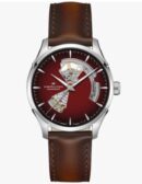 La precisión cobra protagonismo con el Jazzmaster Open Heart 40 mm, cuya esfera calada burdeos con acabado ahumado revela la sutil belleza de la mecánica interna de este reloj. El Jazzmaster Open Heart, en el que destaca el movimiento automático H-10-S, con una reserva de marcha de 80 horas y un resorte regulador de Nivachron™, se combina con una correa de piel marrón con acabado ahumado a juego, que refleja la excelencia artesanal en constante evolución y el detallismo que distinguen a Hamilton.