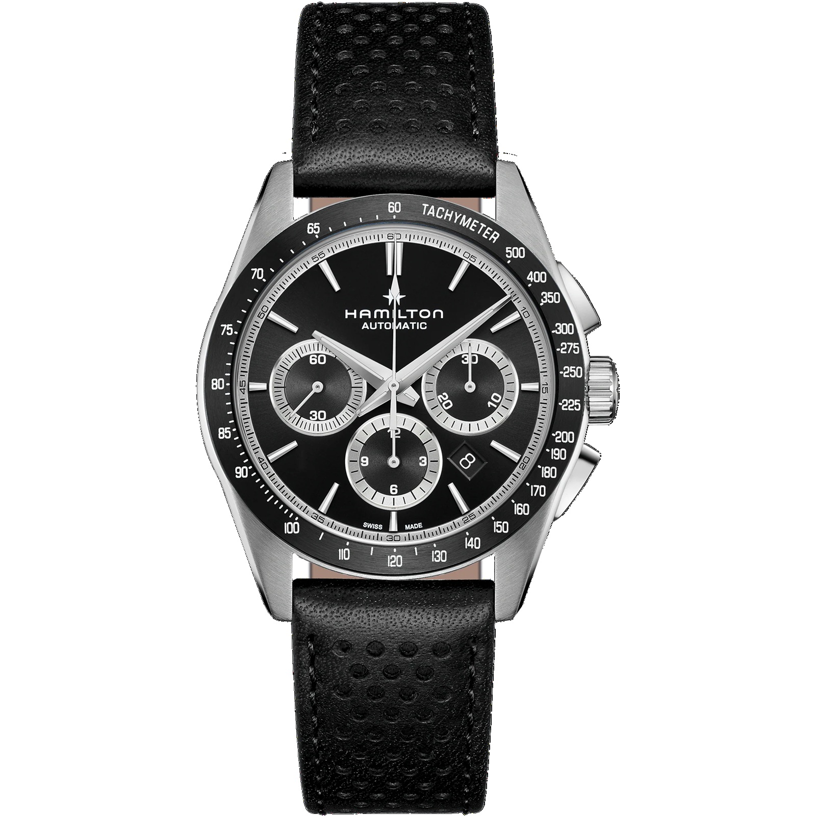 La línea Jazzmaster Performer, diseñada para quienes buscan combinar la funcionalidad y el estilo, ofrece un aspecto imponente, con un diseño deportivo y refinado. Este Jazzmaster Performer Automatic Chronograph, equipado con el movimiento automático de cronógrafo H-31 con reserva de marcha de 60 horas, presenta una caja de acero inoxidable de 42 mm realzada por una refinada esfera negra y un destacable brazalete de acero inoxidable.