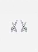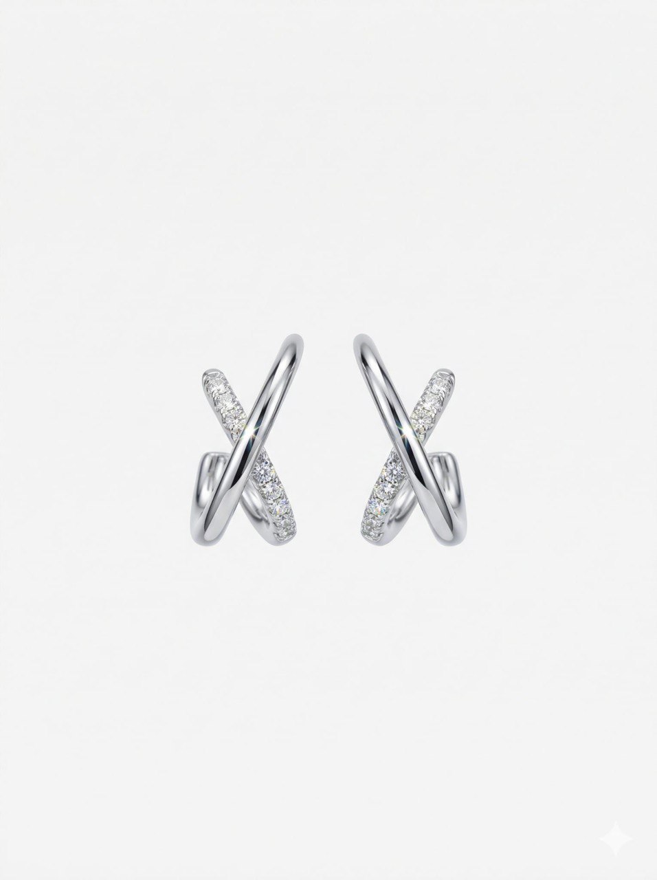 Pendientes de oro blanco de 18 quilates en forma de aspa con hilera de diamantes naturales blancos talla brillante y cierre de presión. Una joya de diseño moderno y distinguido.
