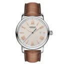 El Reloj Montblanc Heritage Automatic – 126104 forma parte de la  línea Montblanc Star Legacy  que se inspira en el legado de Minerva y en los relojes de bolsillo que fabricó la empresa a finales del siglo XIX y comienzos del siglo XX. El Montblanc Star Legacy Automatic Date ofrece indicaciones prácticas y conjuga una relojería clásica con un estilo elegante pero informal. Presenta una caja de acero de 43 mm con una esfera de color marfil y números romanos chapados en oro rosa de 18 K, índices y agujas luminiscentes.