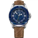 La línea Journey es un homenaje a la tradición y legado de la marca. El diseño de sus manecillas reproduce las señales de los senderos de las montañas suizas y su esfera con textura rugosa imita los senderos naturales de sus rutas. El contrapeso del segundero tiene la forma de la clásica Navaja Suiza y la caja cuenta con formas y curvas bien definidas.En el acabado de la caja con se reflejan la raíces industriales de la marca y el grabado de 1884 hace referencia al año de su fundación.